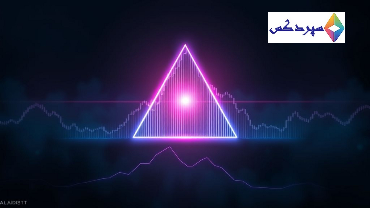 الگوی اصلی: مثلث متقارن — این یک ساختار خنثی است که می‌تواند به هر دو سمت (صعودی یا نزولی) شکسته شود، و این شکست به مومنتوم و تایید حجم بستگی دارد.