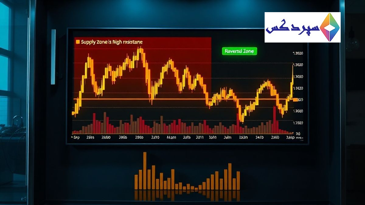 ناحیه عرضه یا Supply Zone بالاتر از قیمت فعلی قرار دارد و با فشار فروش بالا، چند سقف قیمتی مشابه و احتمال شکست جعلی همراه است؛ این منطقه معمولاً هدف گرفتن نقدینگی و اصلاح قیمت است. ناحیه بازگشتی یا Reversal Zone زیر قیمت فعلی است و با تکانه صعودی قبلی، کندلهای بزرگ و عدم تعادل در تقاضا مشخص میشود. هر دو منطقه به تعیین نقاط ورود و خروج، و اهداف کاهش یا افزایش قیمت کمک میکنند و تصویر دقیقتری از رفتار بازار ارائه میدهند.